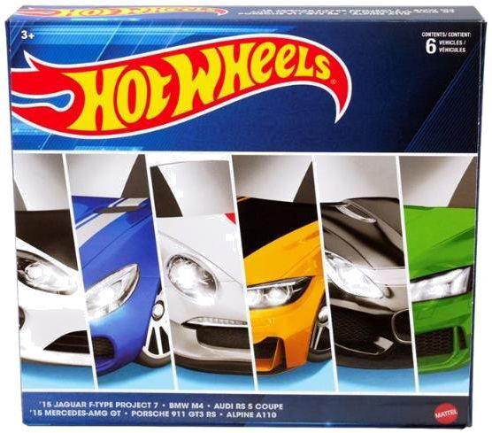 ‘HotWHeeLs ’15 Jaguar F-Type Project 7, BMW M4, Audi RS 5 Coupe, ’15 Mercedes-AMG GT, Porsche 911 GT3 RS & Alpine A110 Diecast Car 6-Pack