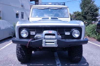 テキサス州、エルパソからやってきました、1968 Broncoです。こちらの個体は前オーナーにより、351WindsorエンジンとSR4 4speedトランスミッションが搭載されており、その他にもEdelbrock Performance RPM Intake,MSD Distributer,&AL Box Coil Wires,Demon Carburatorなどが組み込まれています。この個体をベースに当ガレージオリジナルの“Urban Trail Package”を製作しました。ボディカラーは霞みがちな東京の空気にマッチするシルバーをチョイス。東京のコンクリートジャングルをトレイルするという“Urban Trail Package”のコンセプトに沿った、イメージ通りの仕上がりを実現することができました。