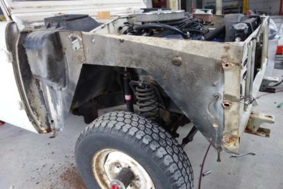 • リアフェンダーの位置決めが完了した1971 Bronco。