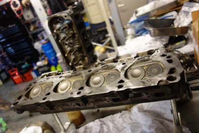 • 続いてはシリンダーヘッドを載せます。新しいバルブを組み込み済みのシリンダーヘッドです。