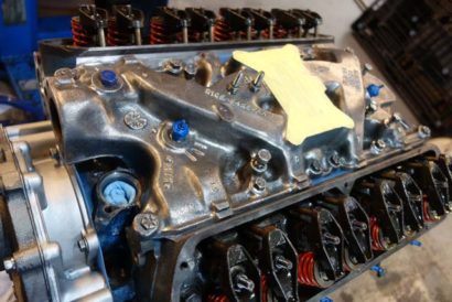 • 左右バンクにシリンダーヘッドが載りました。ココまで来ると、302cid V8エンジンがだいぶメカメカしい姿を取り戻してきます。