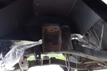 こちらは左右フロントサスペンション取り付け部とインナーフェンダーです。インナーフェンダーはアンダーコートを吹きつけてあります。フレーム、そしてフレームに取り付けられているショックアブソーバー&スプリングタワーも目立った錆などもなく、磨けば綺麗な表面を作り出せそうです。