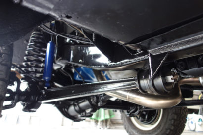 前後アクスルのディファレンシャル部も艶やかで深みのあるブラックに仕上がっています。この辺りは走行時に後続車などから見える部分でもあるので、綺麗に仕上がっているに越したことはありません。下まわりが綺麗なクルマは、シャンとした佇まいに見えますからね。
