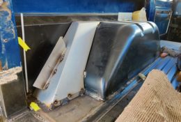 ドライバーサイドはインナークウォーターパネルがインストールされ、ホイールウェル及びフィラーネックエクステンションボックスが仮留めされました。
