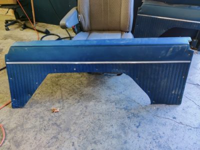 シートバックパネルもメタリックブルーに染められました。こちらはドライバーサイドです。