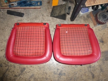 ご覧の通り、オリジナルのチェック柄生地を生かしつつ、ビニールレザー部分のシートスキンが張替えられました.。